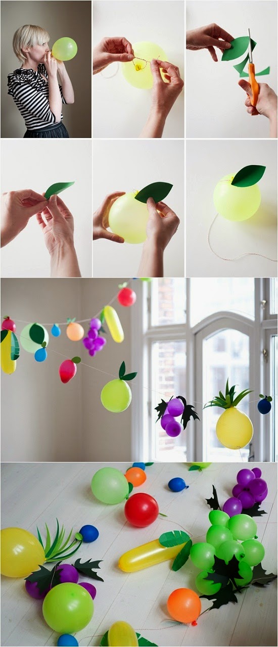 Step 6: Continue tying the balloons to the twine to create the garland. Have fun fruiting!